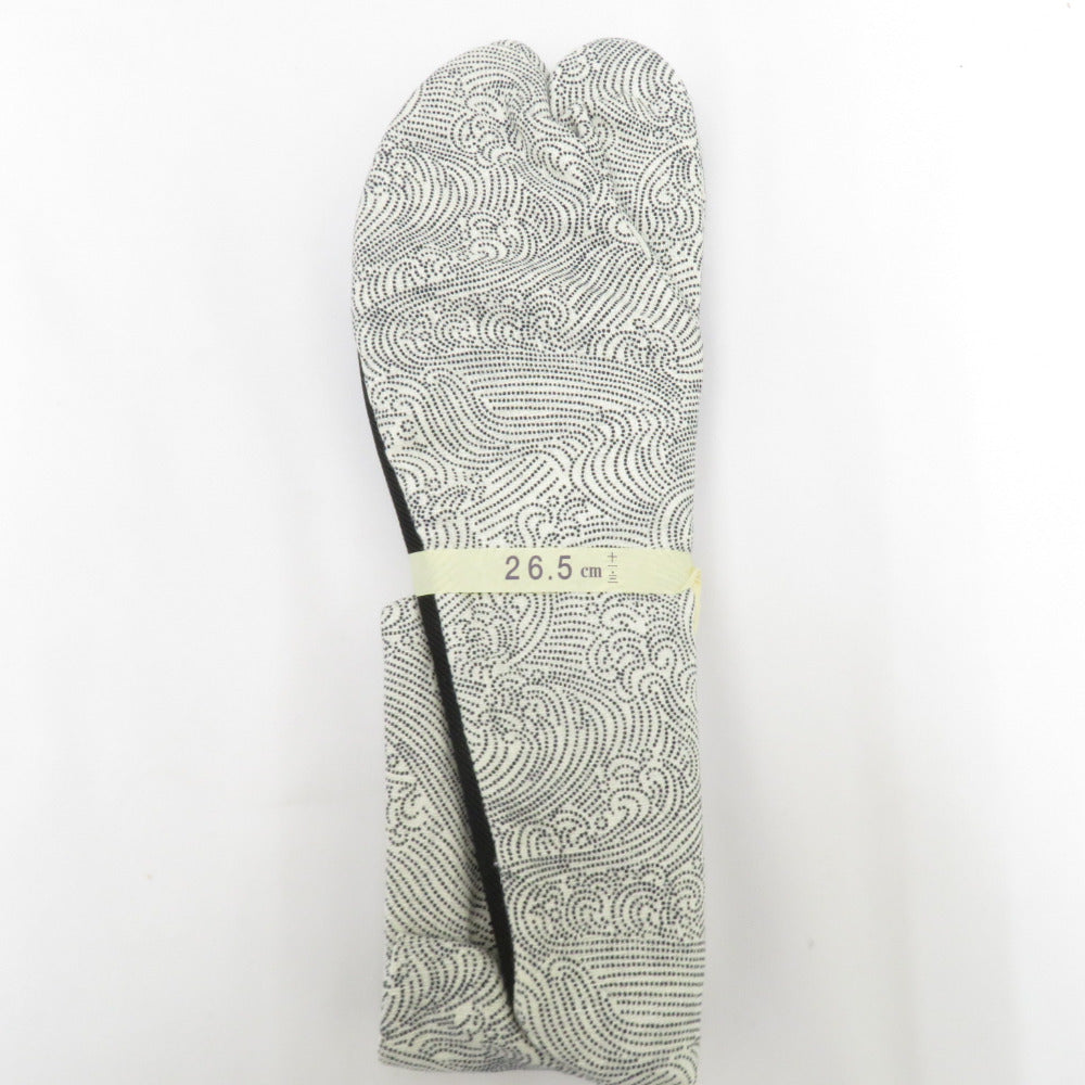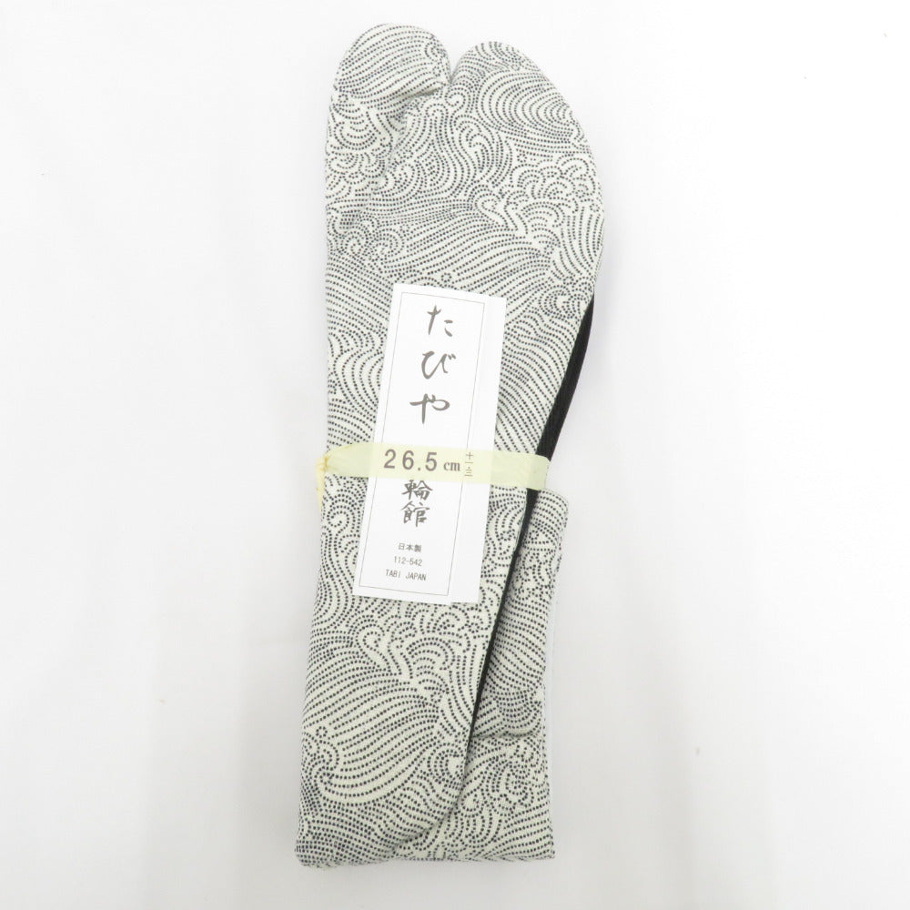 男性用 柄足袋 26.5cm 白色 波柄 底面黒色 日本製 たびや 一輪館 綿100% 4枚こはぜ メンズ 足袋 カジュアル