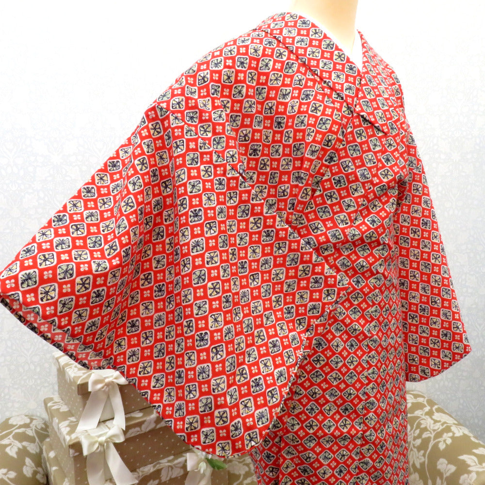 Title Wool kimono Diamond-shaped flower swirl pattern Orange 60.4inch Women's